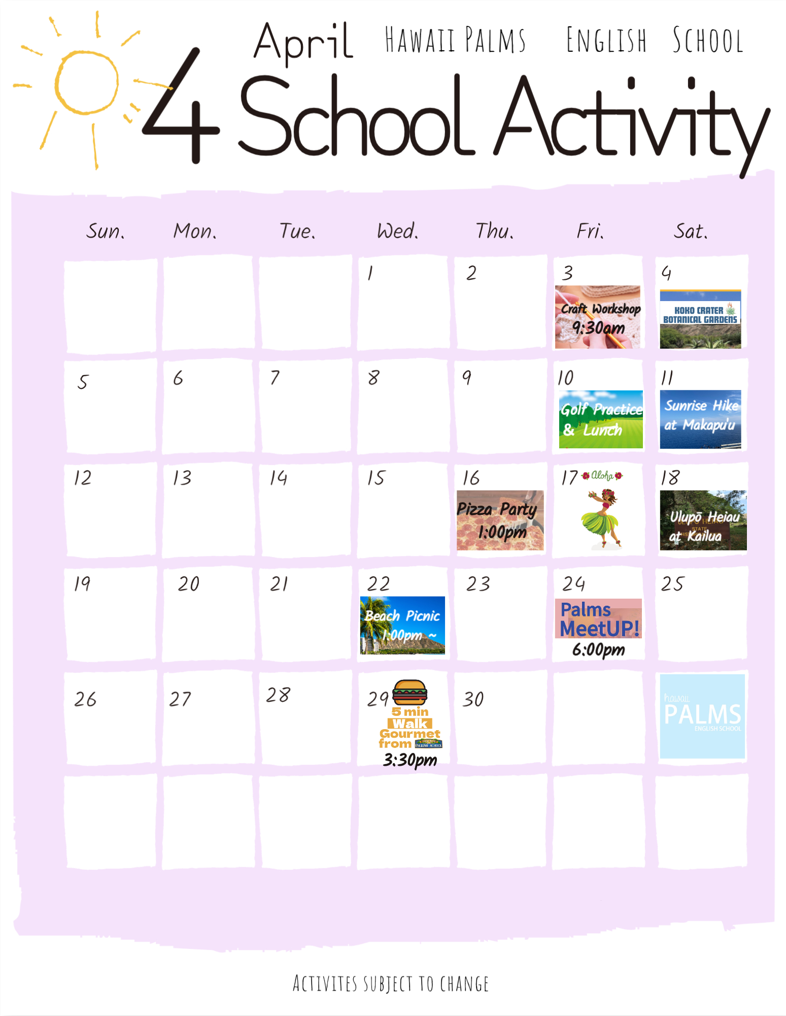 We plan activities every week so students can practice their English outside of the classroom.